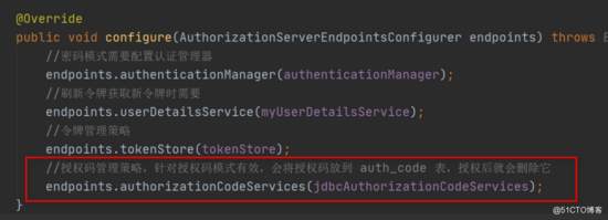 指定 isAuthenticated() 认证后可以访问 /oauth/check_token 端点,指定 permitAll() 所有人可访问 /oauth/token_key 端点,后面要获取公钥。在 OAuth2AuthorizationServerConfig 类中覆盖 configure(AuthorizationServerSecurityConfigurer security) 方法如下: