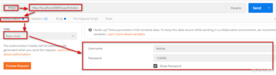 - 客户端将用户名和密码发给认证服务器,向认证服务器请求令牌