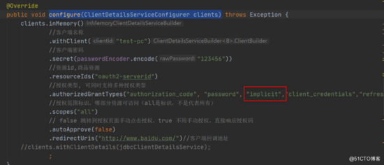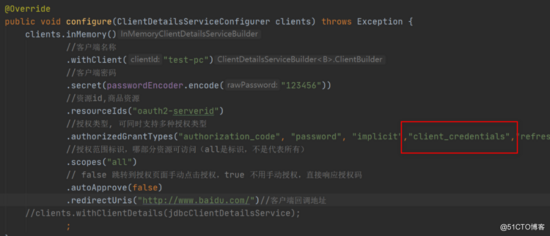 authorized_grant_types:客户端授权类型,支持多个使用逗号分隔
