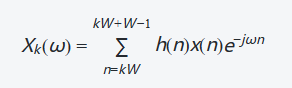 其中,x(n)为原始信号,n为时域采样点,k表示第k个短时段,ω表示频率。这个公式的意思是:对第k个短时段的信号进行窗函数加窗后,再做傅里叶变换,得到该短时段的频率成分。
