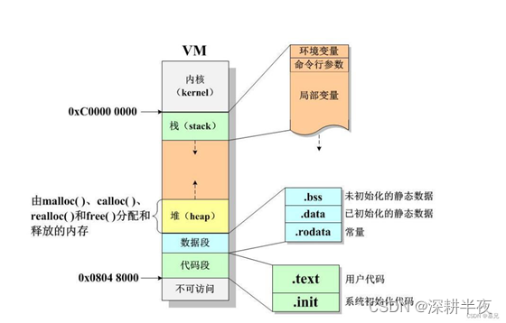 (3)栈的地址空间往地址向下增长,堆的地址空间是由低地址到高地址