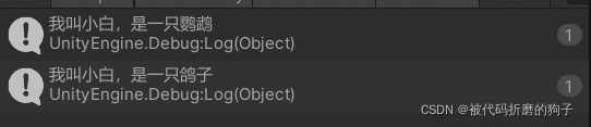 Debug.Log($"我叫{name},是一只鹦鹉");