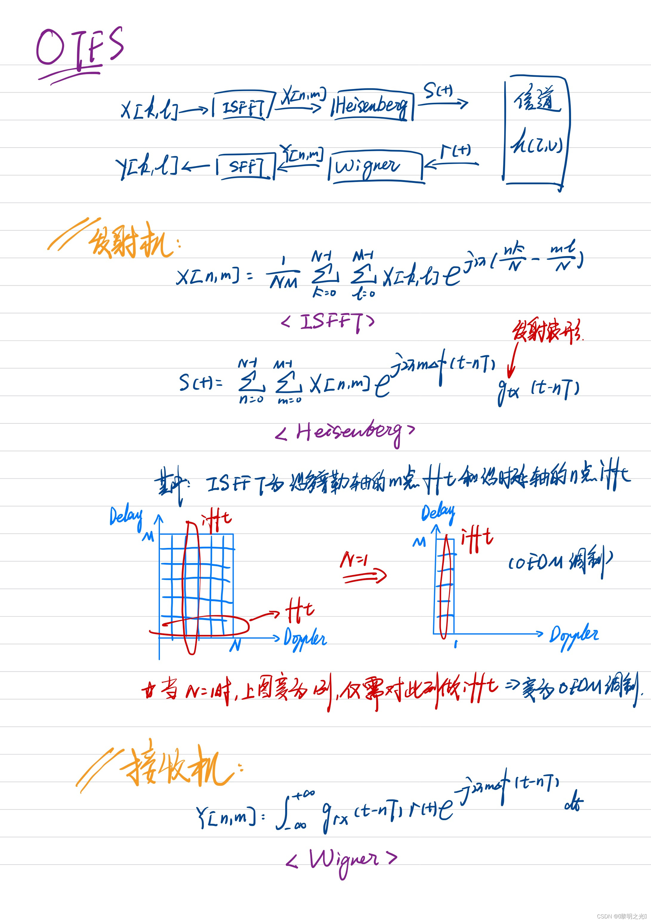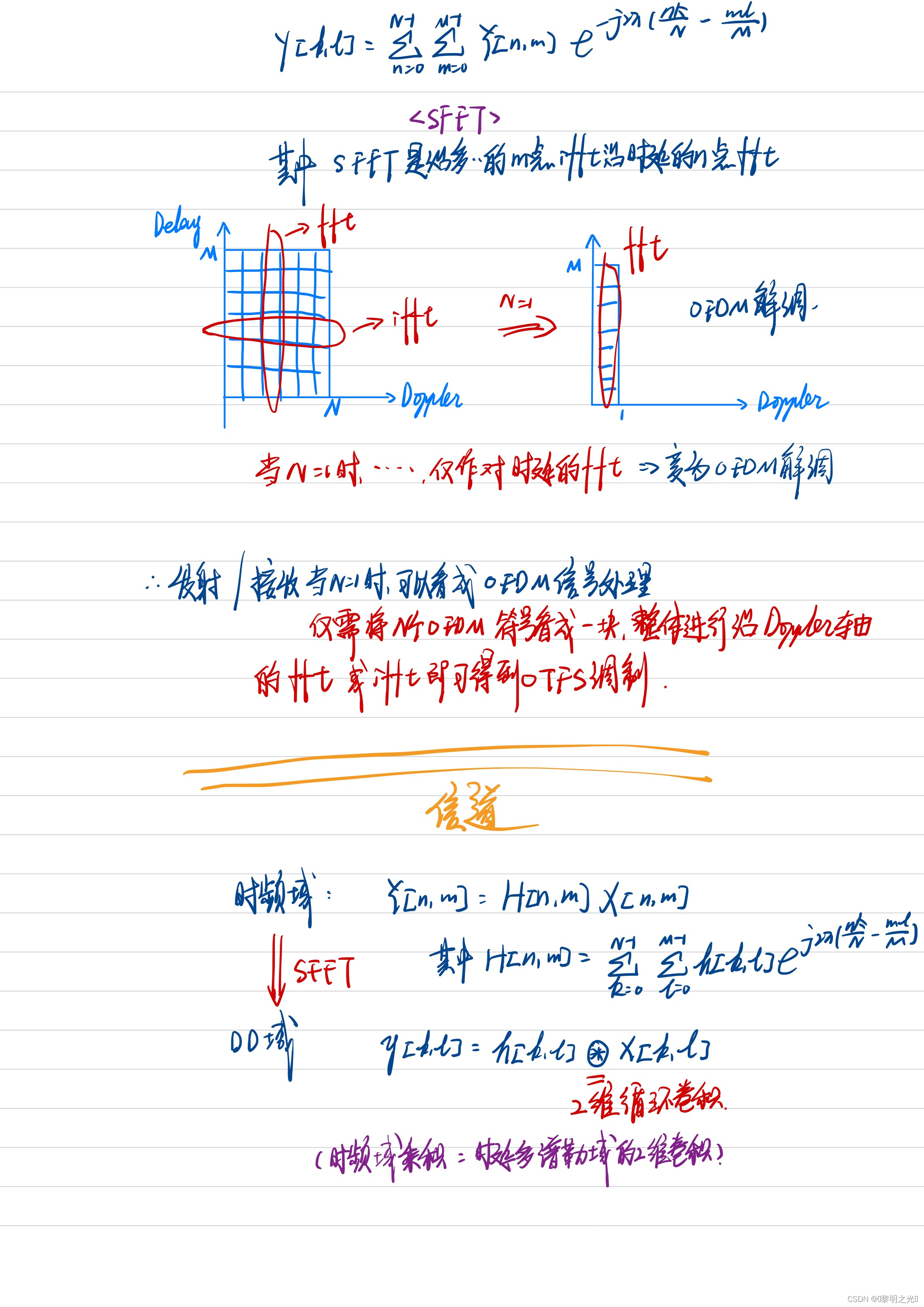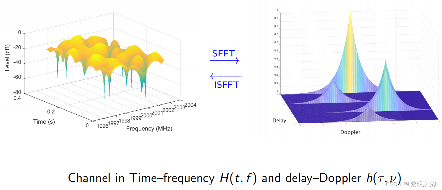 因此,DD域和TF域的关系可以由SFFT和ISFFT相关联,即OTFS和OFDM有着千丝万缕的联系