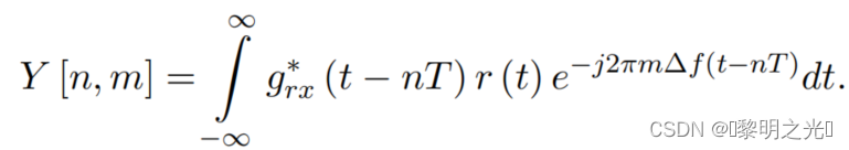 OTFS接收端,首先利用Wigner变换将接收到的时域信号r (t)转换为TF域符号Y [n,m],该过程也称作匹配滤波(Match filter)