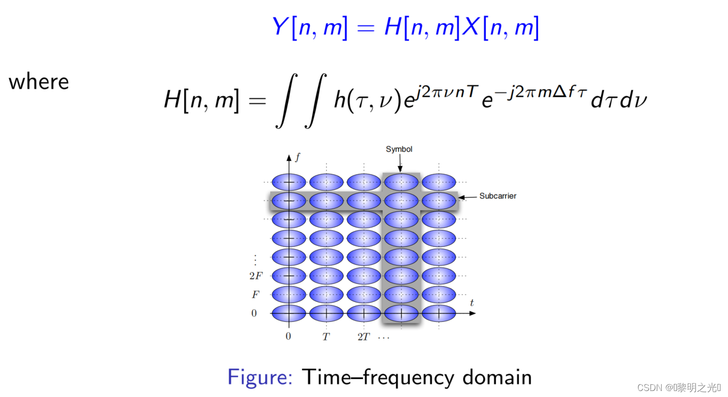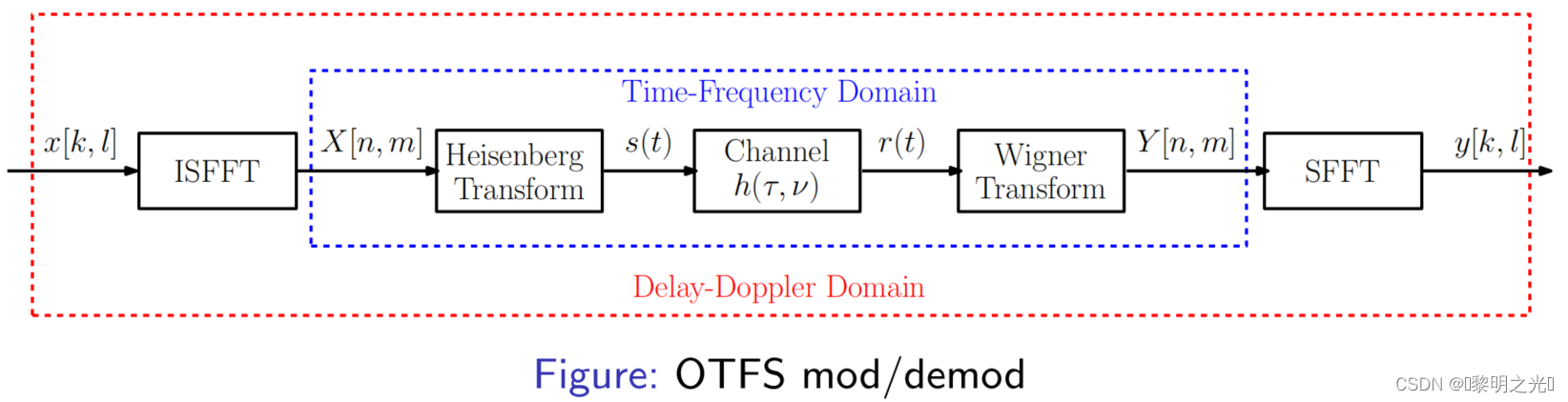根据上图,我将在下面介绍一些关于所涉及的三个域的知识:离散时域、时频域和延迟-多普勒域: