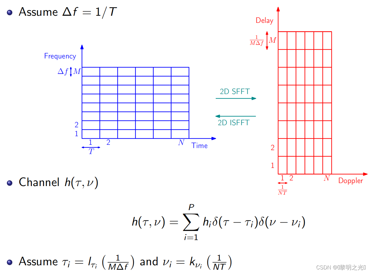 的行进行)得到的。离散的时延多普勒域内对应的M×N点阵列为上图右,该二维时延多普勒域网格