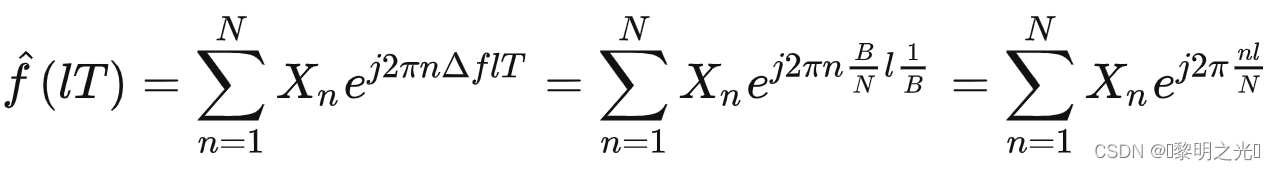进行离散傅里叶逆变换IFFT得到。参考离散傅里叶变换公式: