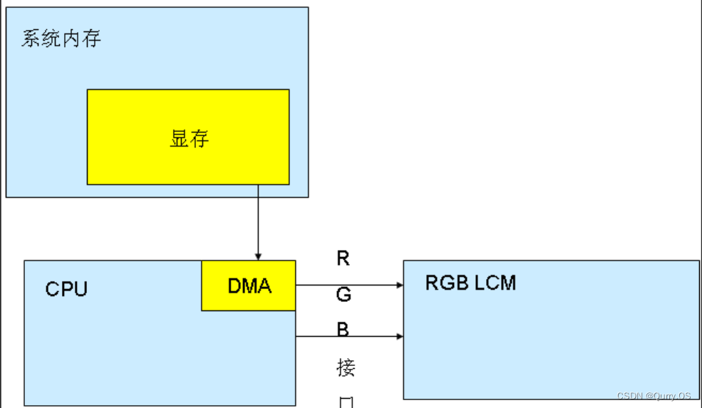 RGB接口LCD 的显存是由系统内存充当的,因此其大小只受限于系统内存的大小,显示数据直接写到屏里,速度较快。