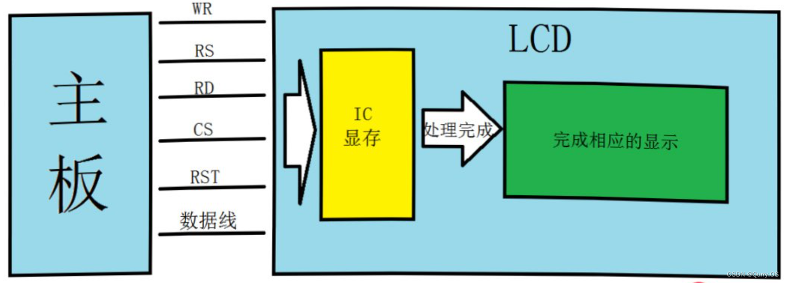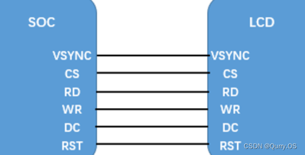 另外通常还包括CS片选信号,RESET复位信号,还有配置lcd驱动寄存器的控制接口(i2c/spi)。