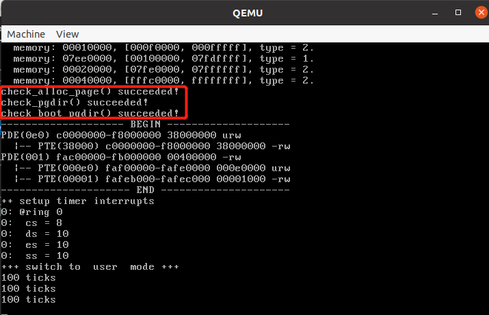 (1) 编译运行 uCore Lab 2 的工程代码;