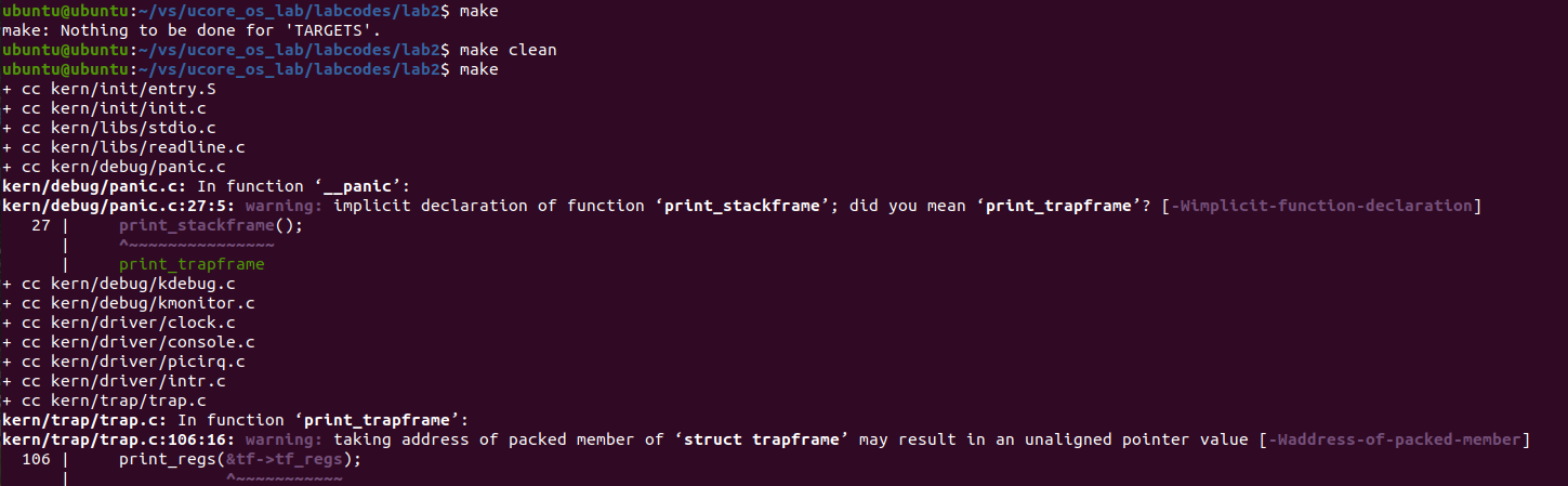 (1)编译运行 uCore Lab 2 的工程代码