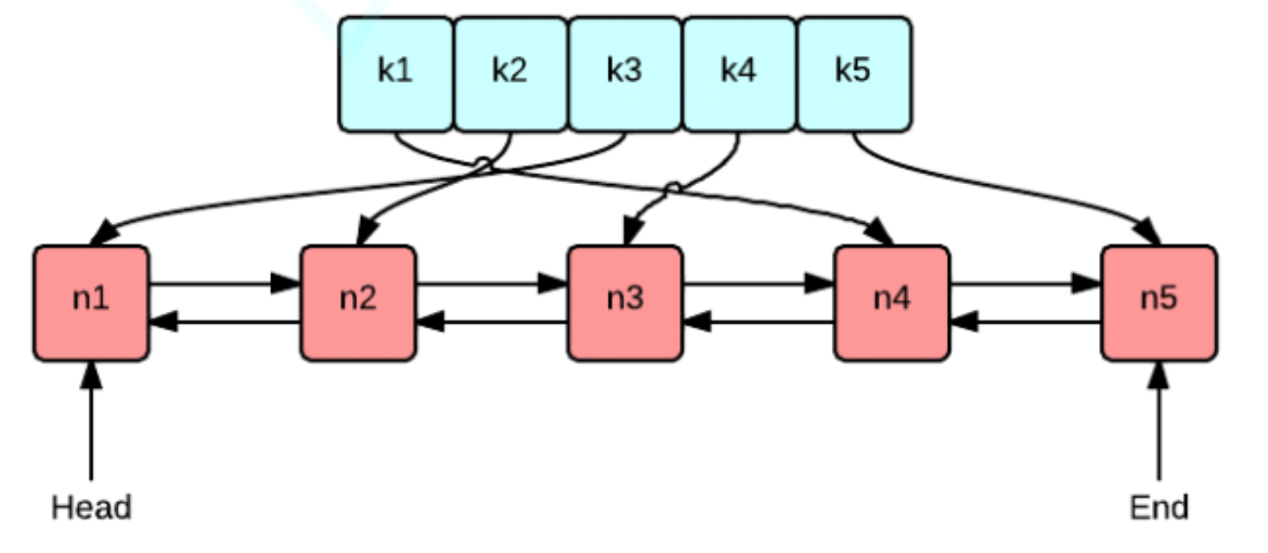 使用双向链表和哈希表的搭配是最高效和经典的。使用双向链表是因为双向链表可以实现任意位置0(1)的插入和删除,使用哈希表是因为哈希表的增删查改也是O(1)。