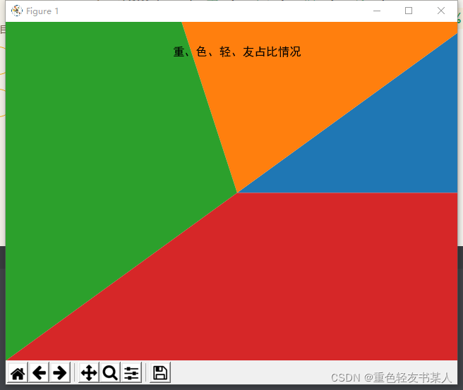 - pctdistance::类似于 labeldistance,指定 autopct 的位置刻度,默认值为 0.6。