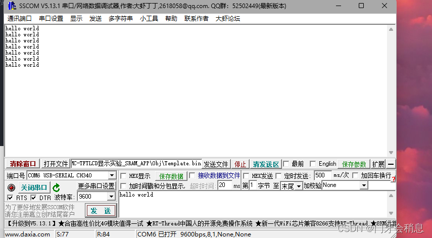最终使用串口调试助手进行验证,可以达到数据收发的效果