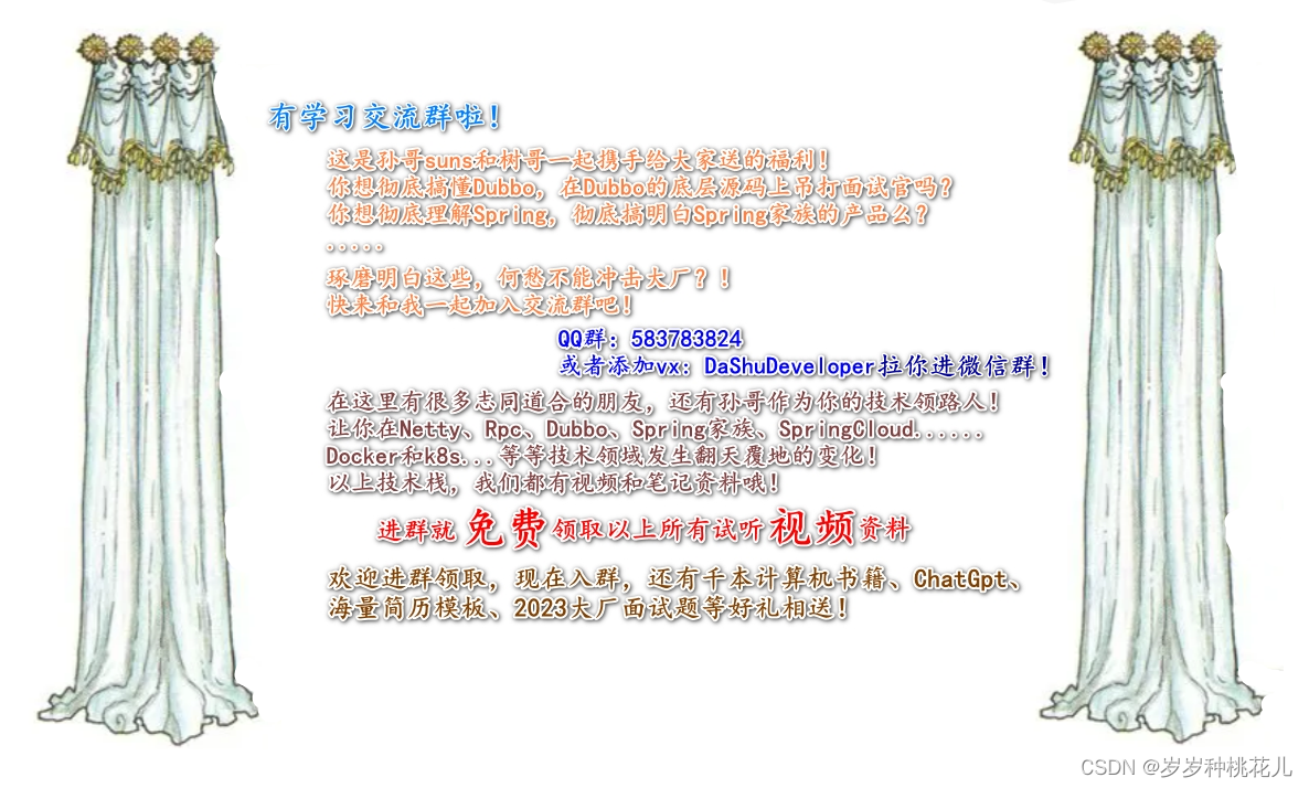 Spring使用Dubbo的时候,我们大致有四类非常核心的配置内容:应用名、应用通信协议和端口号、Service发布为Rpc服务、Service实例化的Bean对象或者是代理对象