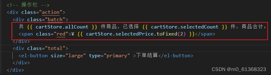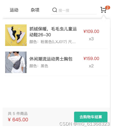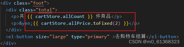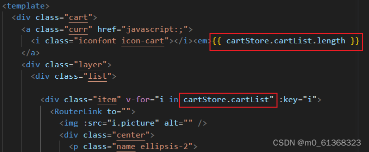 准备头部购物车组件--->从pinia中获取数据,渲染列表