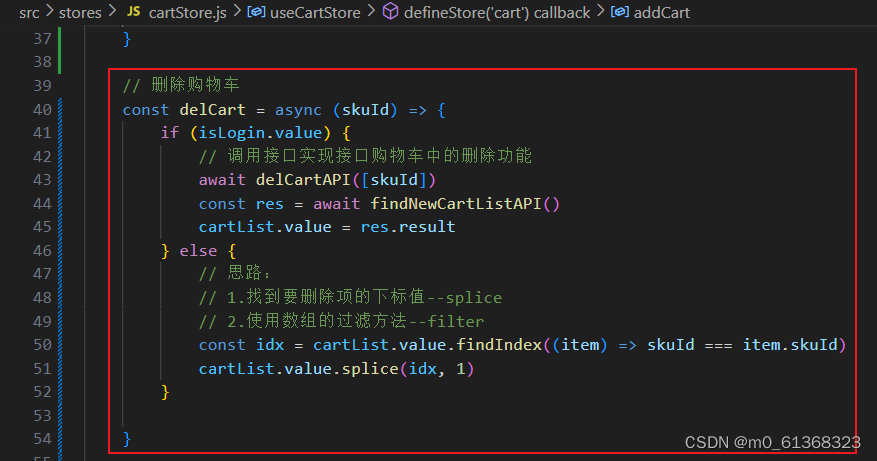 const idx=cartList.value.findIndex((item)=>skuId===item.skuId)