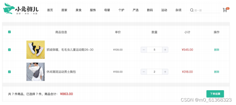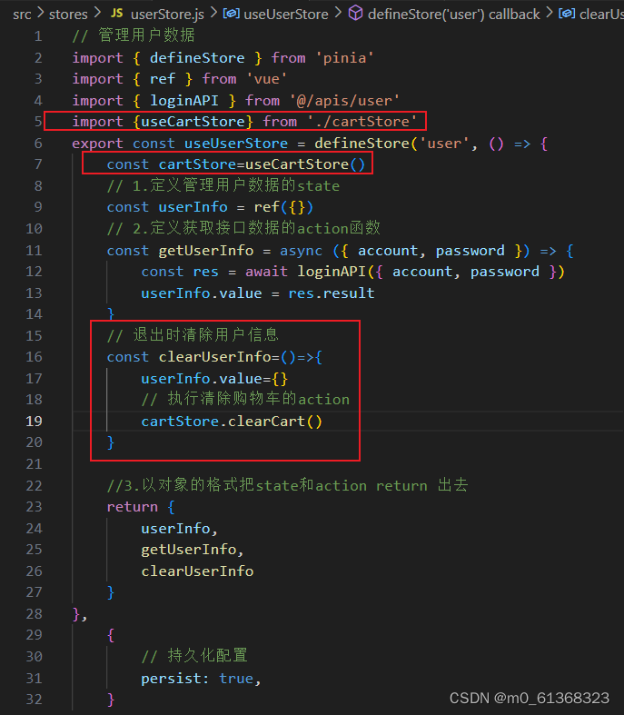 在用户退出登录时,除了清除用户信息之外,也需要把购物车数据清空