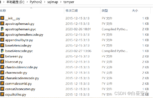 当调用多个脚本的时候,脚本之间用逗号隔开,调用的脚本在 sqlmap文件夹下的 tamper 文件夹中