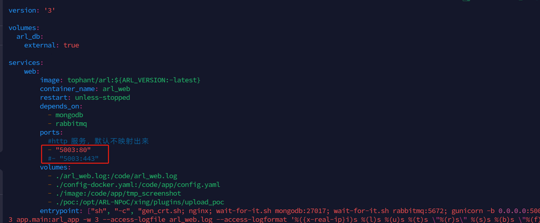 在/root/docker_arl/config-docker.yaml文件中注释掉就行。