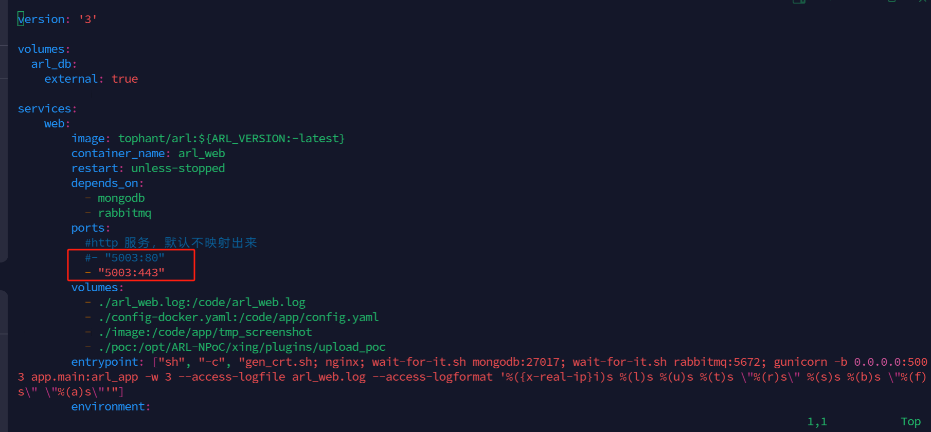 在/root/docker_arl/docker-compose.yml文件编辑以下内容。