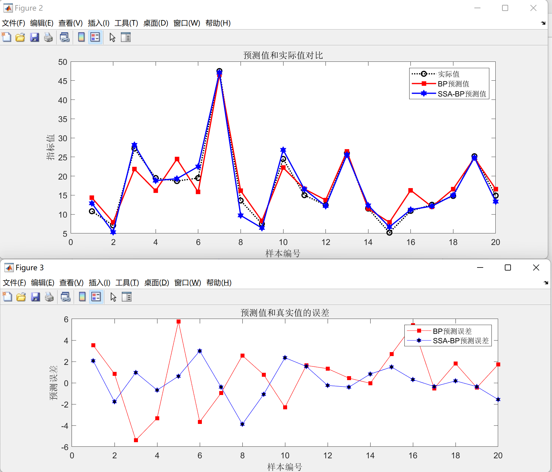 (3)BP和SSA-BP的各项误差指标,预测准确率