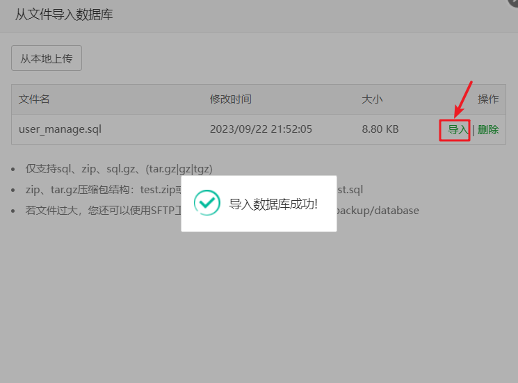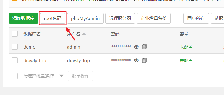 3.在宝塔面板选择数据库,点击添加数据库,填写数据库名、用户名和密码,数据库名需要和springboot中设置的数据库名保持一致