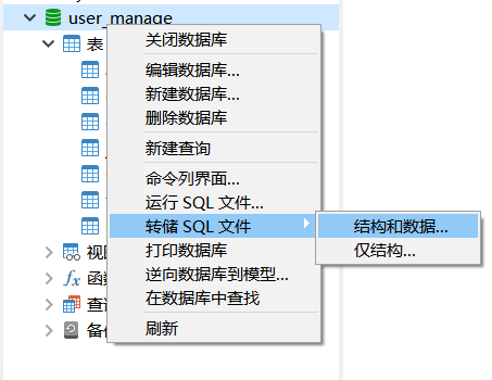 1.打开Navicat,右键单击想导出的数据库,选择转储SQL文件——结构和数据