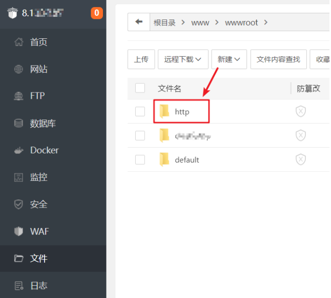 1.进入宝塔面板,把dist文件夹传入http目录下