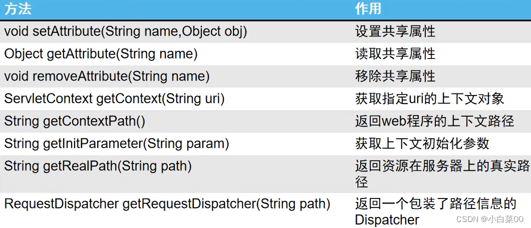 servletContextAttributeEvent.getName():获得ServletContext属性名,返回值为string类型