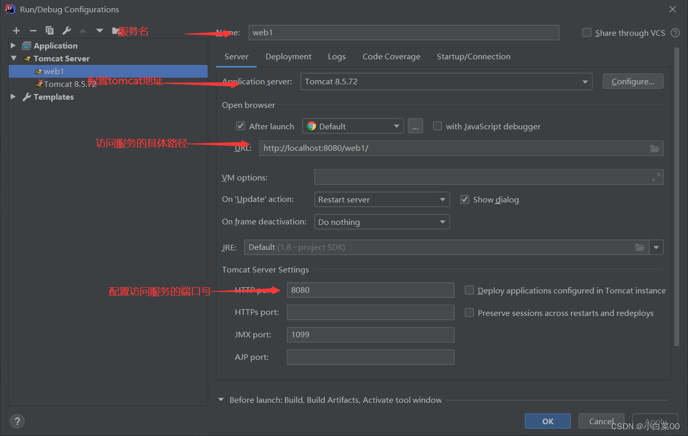 点击Deployment后点击右边的+号添加你项目的war包然后apply并ok