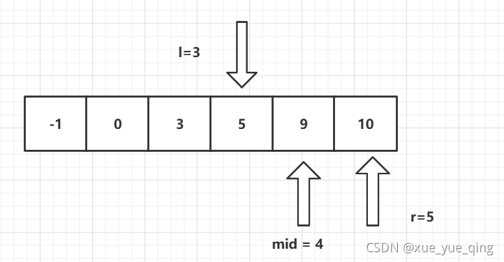 - nums[mid] < target 中间值小于目标值,应当在区间 [ mid+1 , r ] 中继续查找
