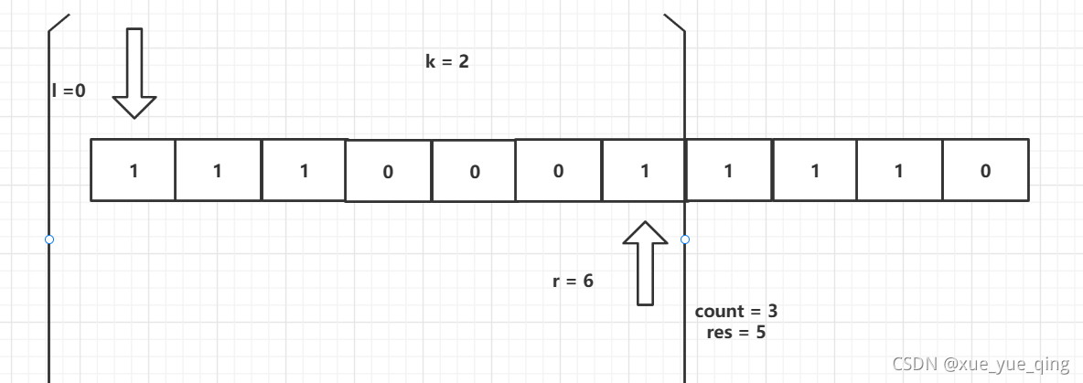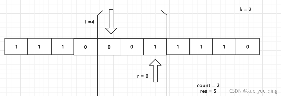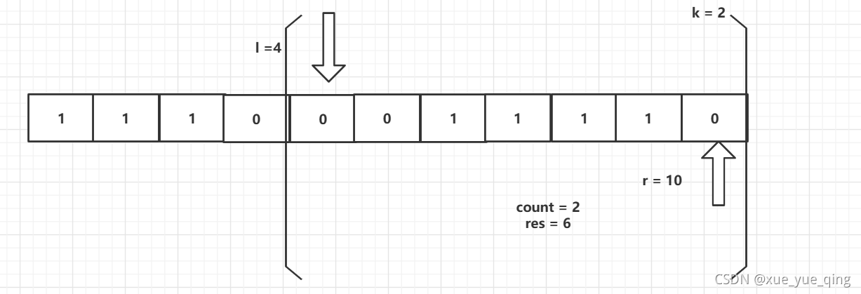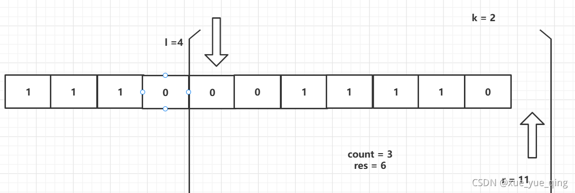 //如果子区间0的个数 大于 k ,缩小窗口 l < n防止数组下标越界