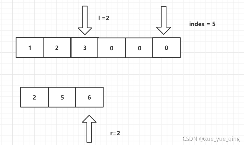 //l指向nums1尾部元素,r指向nums2尾部元素 ,index指向nums1要存储比较后数据的位置