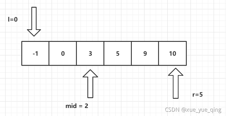 在数组有序的前提下用双指针进行二分查找,双指针的作用在于"二分"。首先左右两个指针l r,分别指向数组的首元素和尾元素,判断左右指针中间数组下标mid所对应的数组值与目标值的大小关系,共有如下三种情况:
