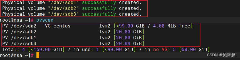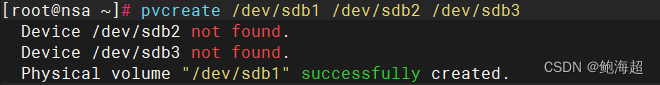 pvcreate /dev/sdb1 /dev/sdb2 /dev/sdb3