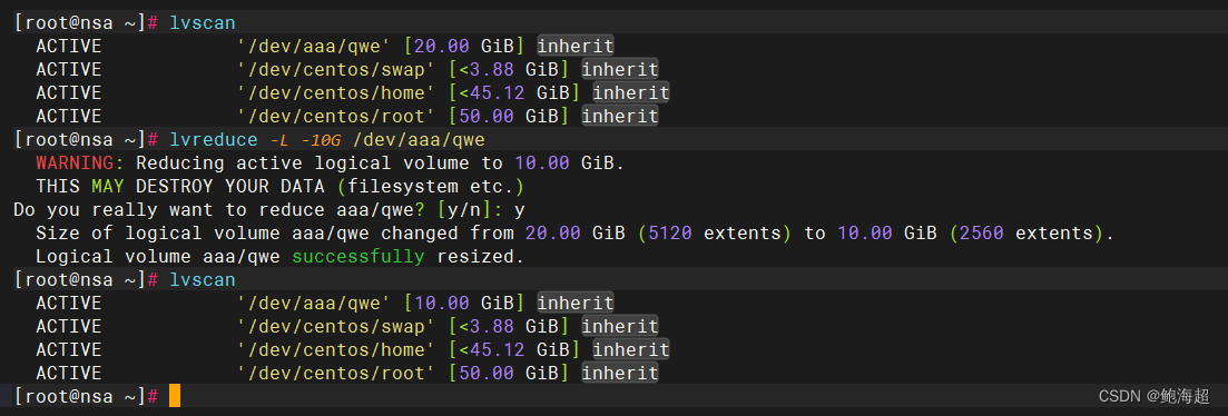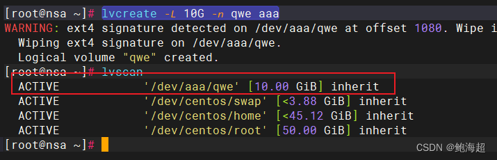 从aaa的卷组往出分10g给qwe这个逻辑卷