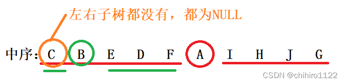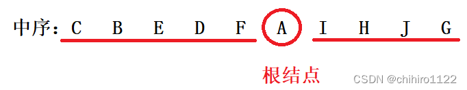 如上图,中序中:在根结点左边的结点就是这个根结点对应的左子树的所有结点,在根结点右边的结点就是这个根结点对应的右子树的所有结点。