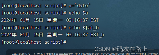 - 希望变量的内容是命令的解析结果时,要用反引号``,或者用$()把命令括起来再赋值。