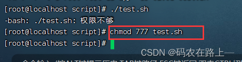 使用./test.sh需要权限执行 chmod 777 test.sh 赋权