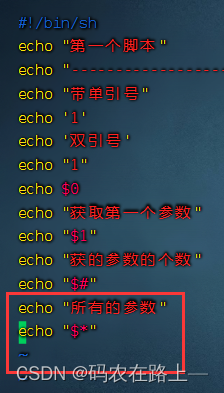 $* 获取当前shell的所有传参的参数,不加引号同$@