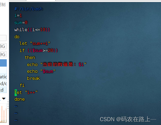 例1:1到10,当对应的和大于20时跳出循环,并打印当前和是多少,及当前数值是多少