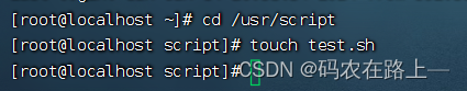 创建一个专门的目录,进入目录,然后执行 touch test.sh 文件