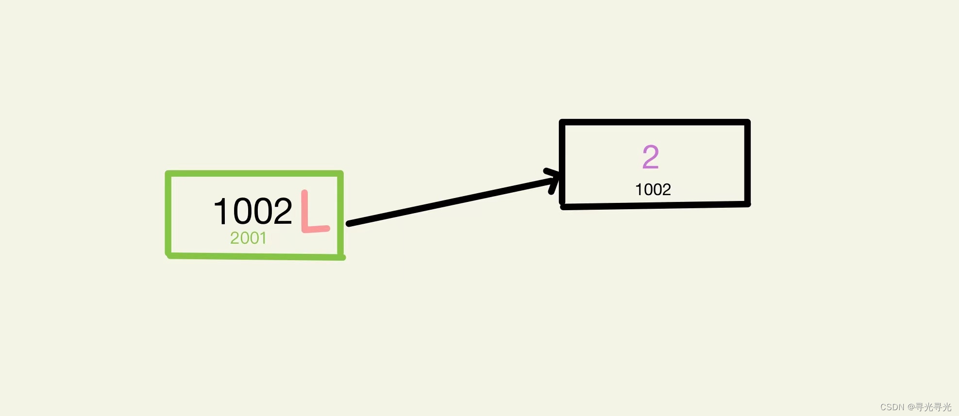 首先咱们将结构体存储在1(内存地址为1001)处,而指向结构体的指针 L 保存的便是结构体的地址1001(即解引此地址(*L)可以得到结构体),而这个结构体指针需要内存来存储它,故其也有一个地址(即内存地址2001保存了L,L保存了地址2001上的数据(即1001),解引此地址(2001)可以得到内存地址1001,再解引1001便可得到结构体,双重解引),即内存地址2001保存着内存地址1001(也就是L),而内存地址1001保存着结构体。
