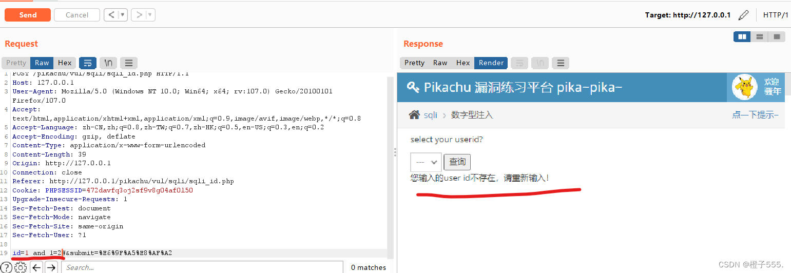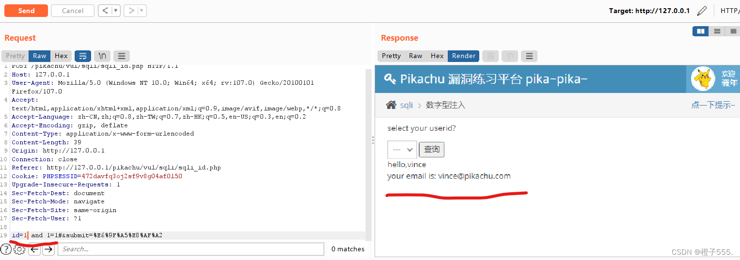 id=1 and 1=1 回显正常,存在注入点,验证了数字型注入。