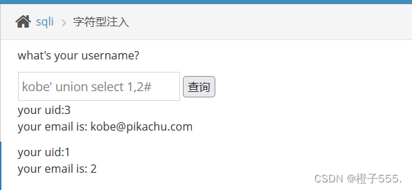 kobe' union select 1,2#