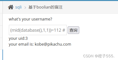 在布尔盲注的过程中, 需要使用到二分法和一些mysql的函数, 比如mid(), ascii(), length()等等
